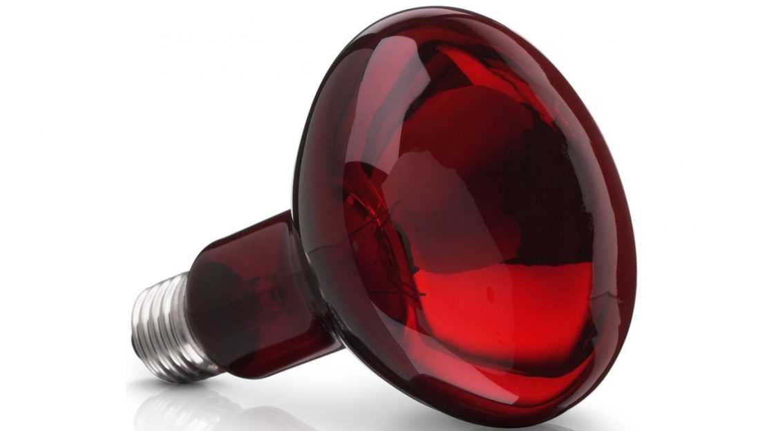 Выглядят приборы как обычные лампы со стеклянной колбой и нитью из вольфрамового материала внутри. Основное отличие от простых ламп накаливания – окрашивание колбы в бурый цвет и зеркальное покрытие изнутри. Лампа вкручивается в патрон, защищенный специальным корпусом, и подвешивается в зону прогрева.