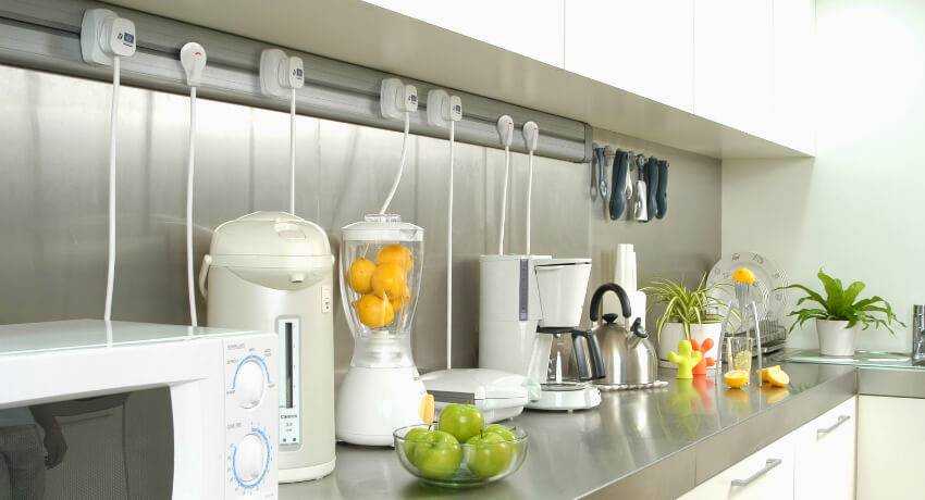 Лучше всего, чтобы каждому электрическому прибору был установлен свой комплект деталей, обеспечивающих безопасность. Около рабочей поверхности надо оставить пару свободных розеток, которые можно применять для мелкой техники.