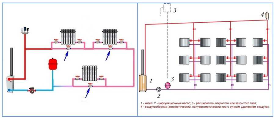 При такой схеме подключение даже завоздушенная батарея будет горячей.