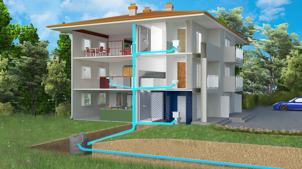 КНС широко используются в индивидуальных домах, когда уровень выхода канализации расположен выше приборов санитарно — технического назначения. Такими потребителями могут быть бассейны, бани, сауны и другие устройства, потребляющие большой объем воды, при расположении в гараже, подвале или цокольном этаже.