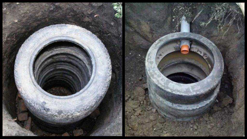 Из старых автомобильных шин можно устроить отличную выгребную яму. Объем вмещаемых отходов зависит только от глубины ямы – чем больше шин в ней разместят, тем реже ее придется чистить.