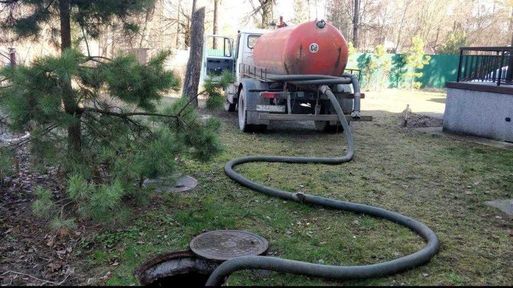 Выкачка нечистот ассенизатором.
