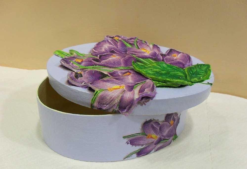 - Далее надо работать в обычной технике декупажа, с применением клея ПВА и кистей. После окончания работы, заготовку надо оставить высохнуть на ночь.