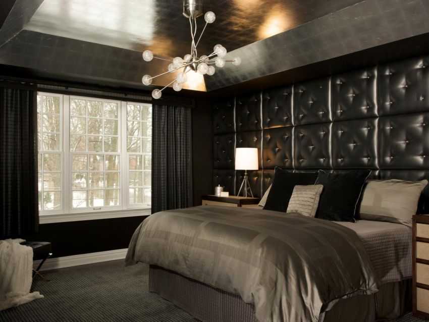 Строгое сочетание черного и серого цвета в спальне