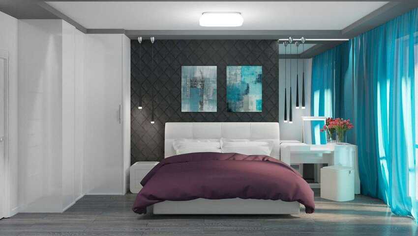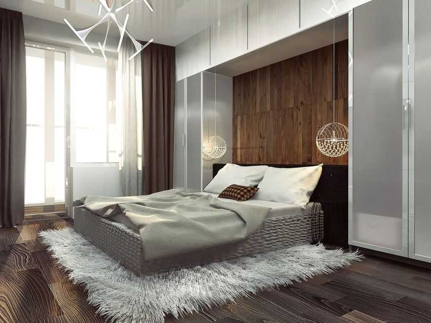 В таких спальнях стоит выбирать глянцевые текстуры, которые способствуют отражению света, что визуально увеличивает пространство.