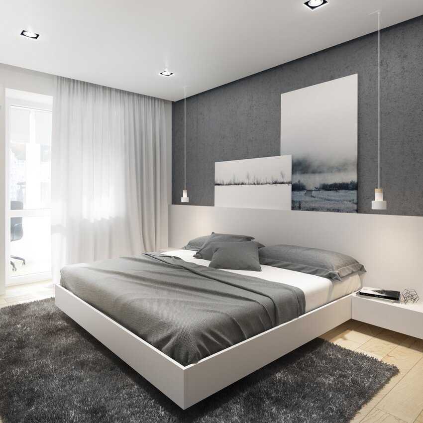 Спальня в серо-белых тонах