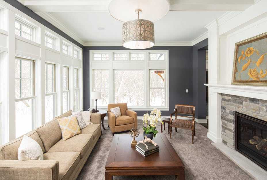 Если разбавить серый цвет бежевыми вкраплениями, комната станет уютнее и теплее. Наиболее удачным выбором считается гармония «грея» с песочно-бежевыми тонами. Классикой жанра, конечно, является пудровый цвет, создающий благородное и утонченное сочетание, подходящее для спальни и гостиной. Не останавливайтесь лишь на стенах – пусть мебель и потолок будут такими же либо темного коричневого цвета. Уверяем, это будет смотреться стильно и дорого!