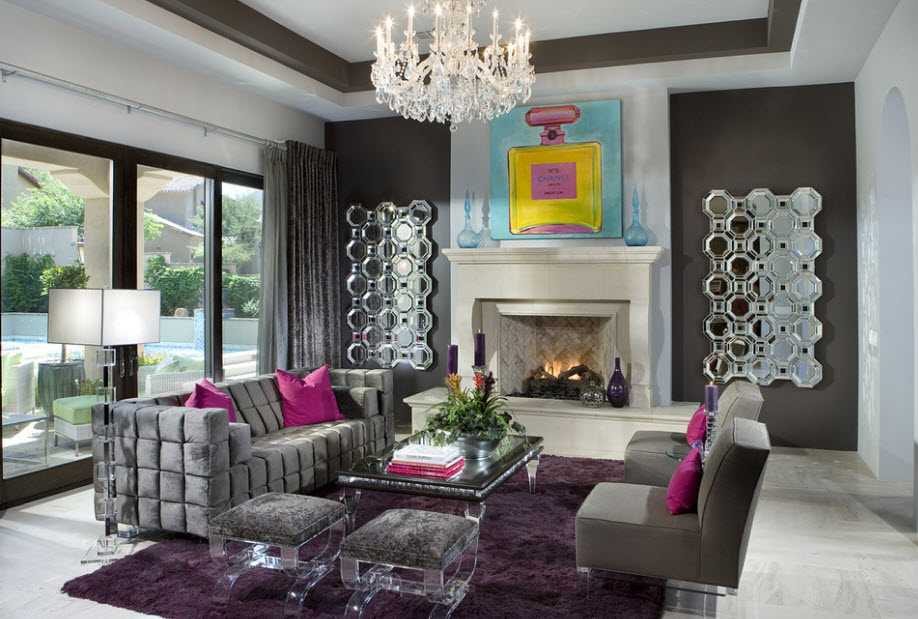 - Поп-арт. Серый цвет в качестве основы предпочтителен для поп-арта, поскольку он служит смягчающим элементом для контрастных и резких сочетаний.