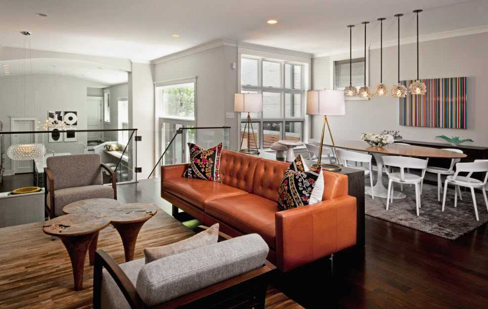 «Необычная компания», — подумаете вы. Вовсе нет! Ведь оранжевой гаммой пользоваться будем только для акцентов. Оживить интерьер в силах морковный, сочный апельсиновый и рыжий цвета.
