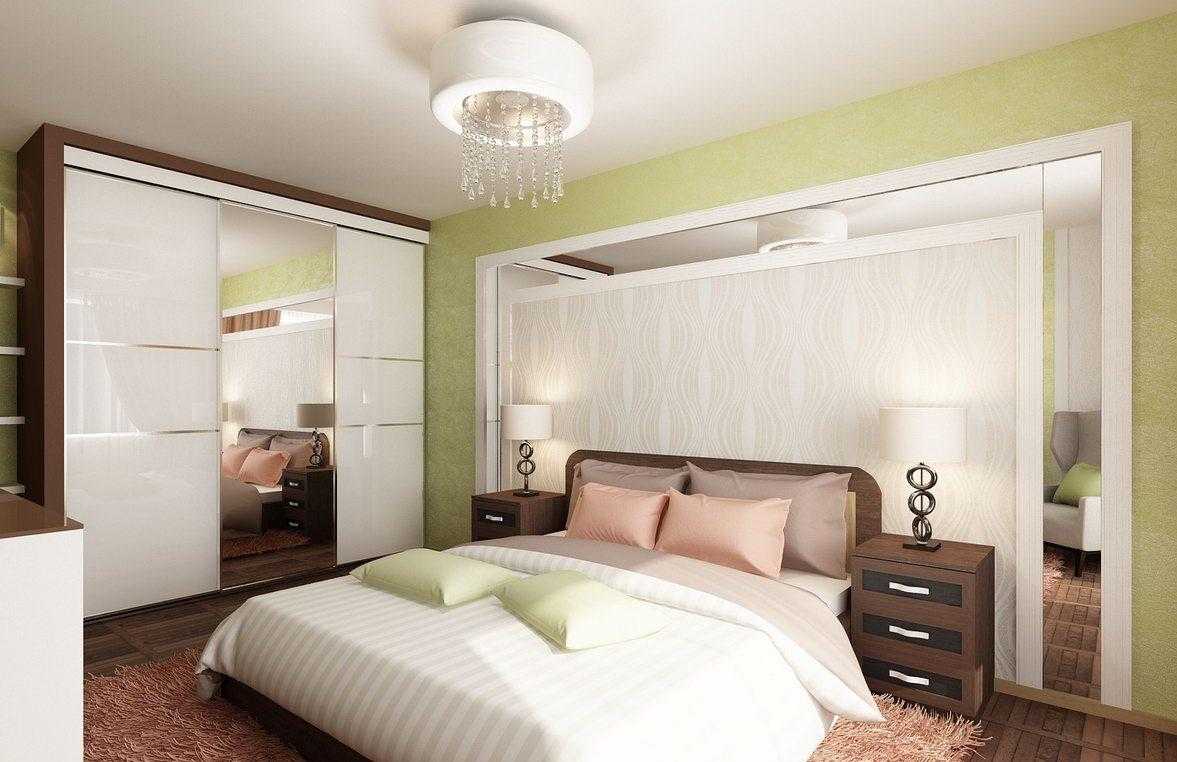 В небольшой спальне устанавливают зеркала, которые благодаря оптическим эффектам поспособствуют визуальному увеличению пространства. Кровать уместно декорировать подушками из переливающейся ткани.