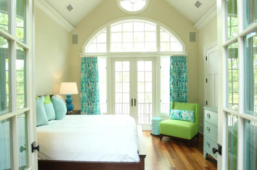 Уютная мятная спальня будет наполнена прохладой в жаркие летние дни.