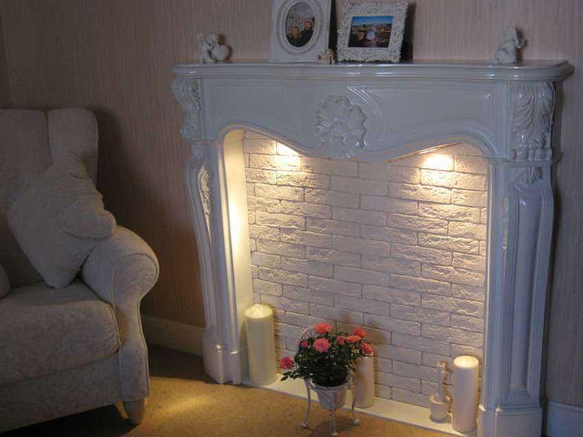 Различные элементы подходят для создания имитаций каминов своими руками в квартире, где совсем мало места. Самое главное — подобрать клей, поскольку на шурупах и гвоздях крепления недопустимы.