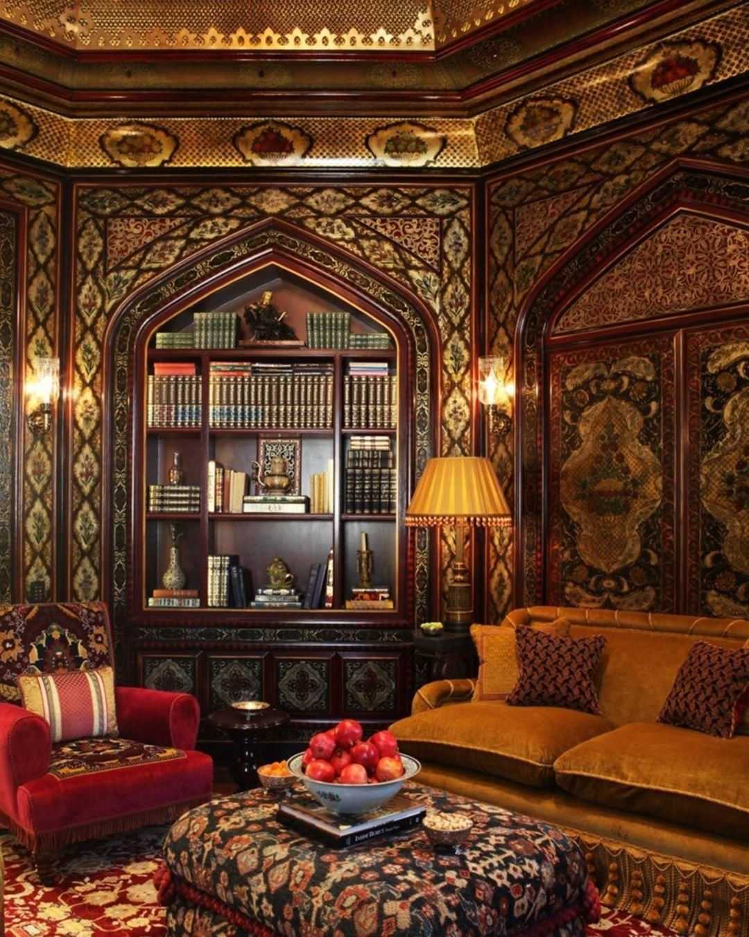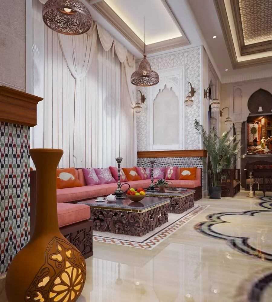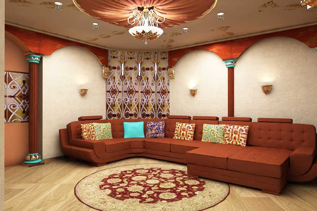 Отделка стен в современном арабском интерьере производится с помощью следующих цветов: