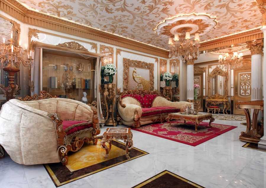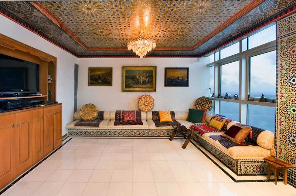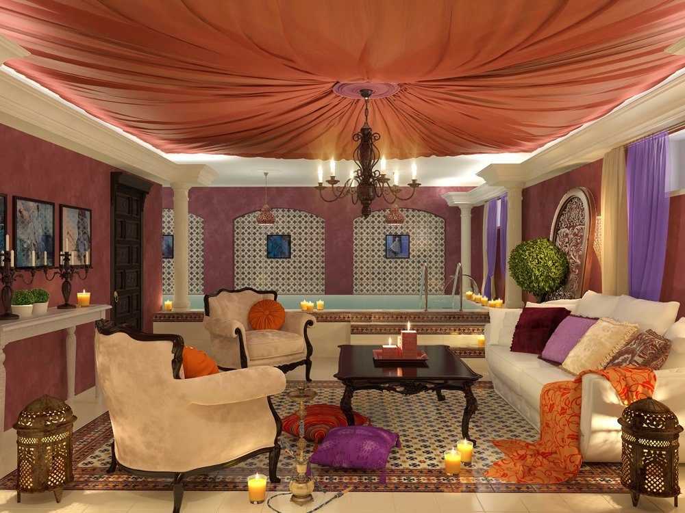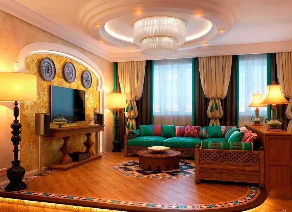 Не менее важное значение имеет потолок. Как было сказано, идеальный восточный дизайн подразумевает высокие потолки, сделанные в 2-3 яруса