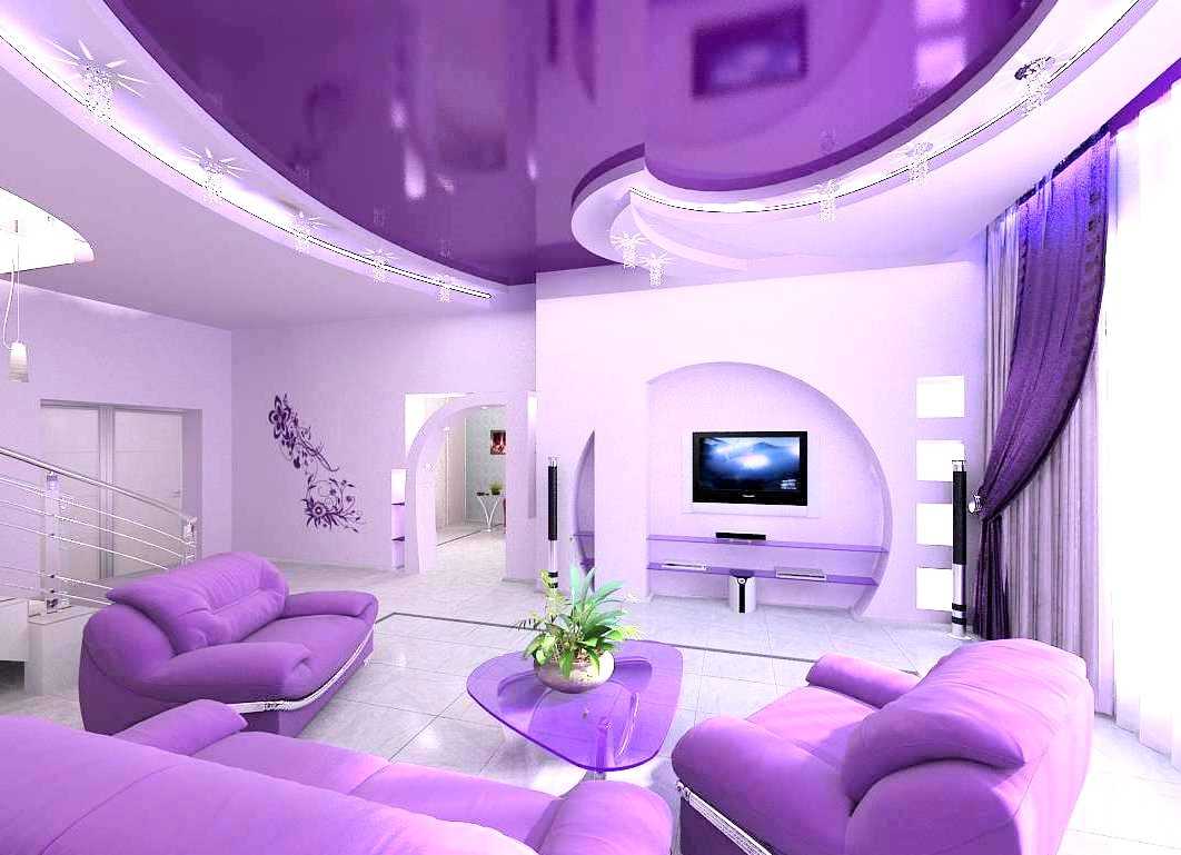 Потолок в гостиной – важный элемент декора, на который обращают внимание чаще всего. Из множества современных материалов натяжной потолок наилучшим образом подходит как для квартиры, так и для дома