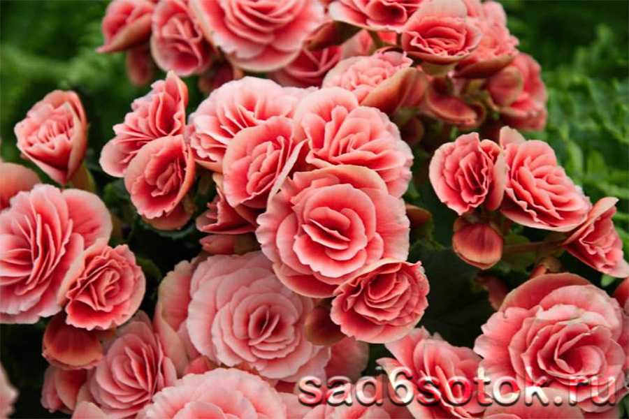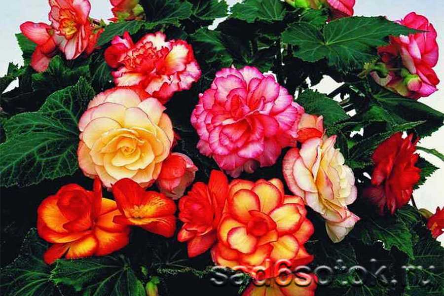 Самые роскошные цветы имеют клубневые бегонии. Их «восковые» цветы ярких сочных оттенков напоминают камелии или крупные гвоздики. Существуют сорта клубневых бегоний с цветами размером 20–30 см.