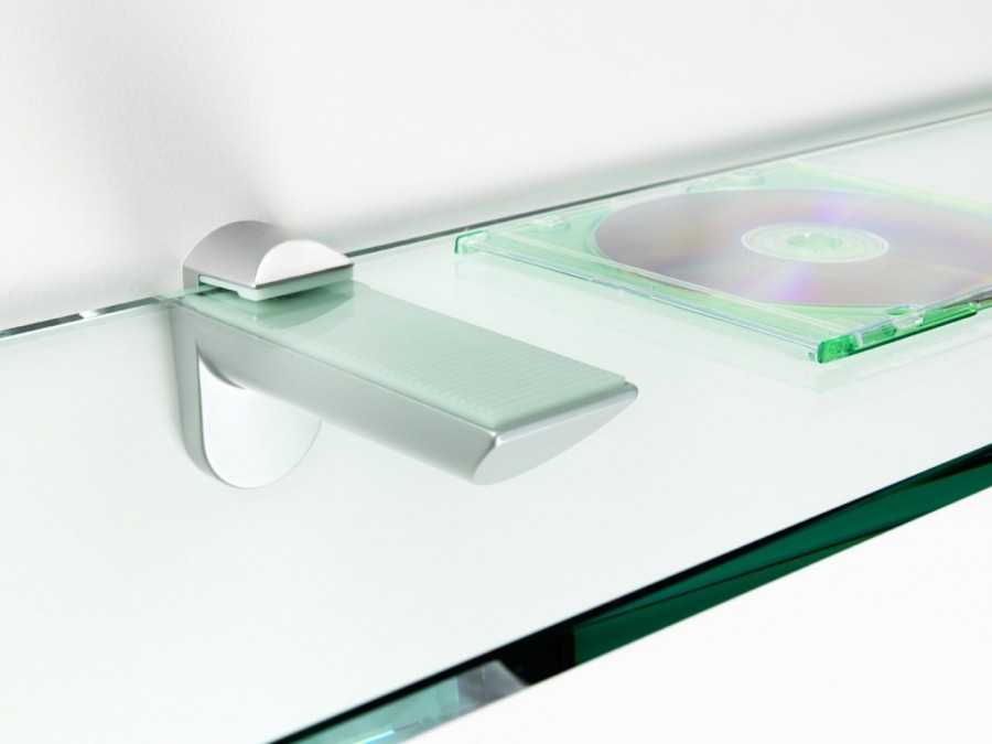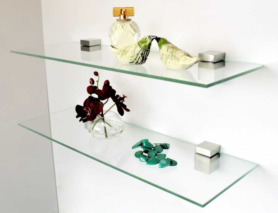 - материал, из которого изготовлена полка. Для стеклянных полок не подходят массивные крепления, так как они делают конструкцию слишком тяжелой. Для полок из металла лучше всего подойдут внешние крепежные элементы, а для деревянных полок – внутренние крепежи;