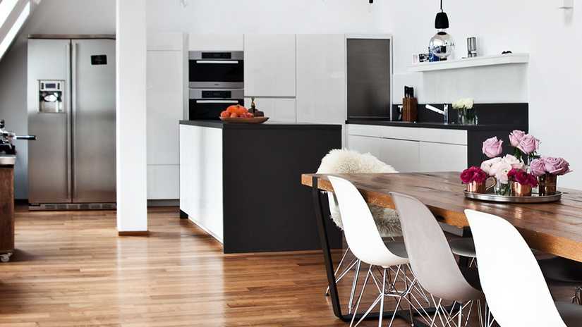 Сразу ставятся вне конкурса холодильник и газовая плита — без них обойтись нельзя. Стоит лишь отметить, что холодильник обязательно должен быть двухкамерным с большим отделением под замороженные продукты. А вот наличие уже классической газовой плиты не всегда актуально. Многие стали пользоваться электрическим прототипом, особенно в странах Европы. А в некоторых кухонных интерьерах дело обходится наличием обычной варочной поверхности, хорошей электрической духовки или микроволновой печью.