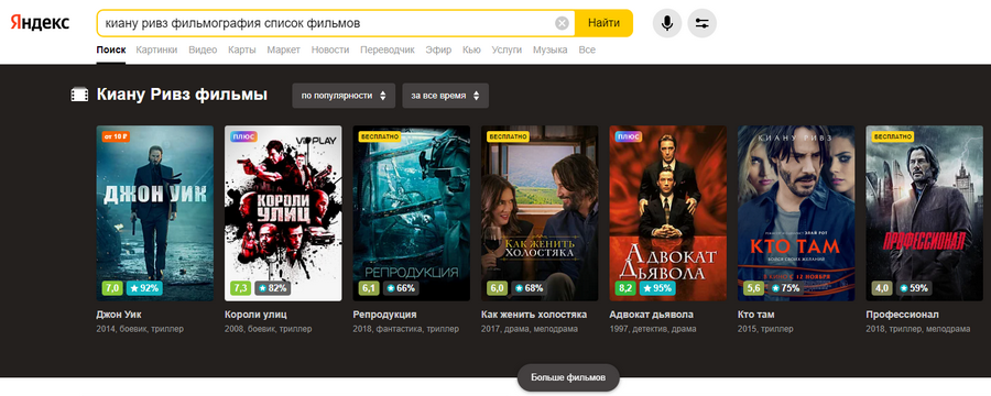 Один из вариантов поиска фильма по фрагменту видео с известными актерами – просмотр их фильмографии.