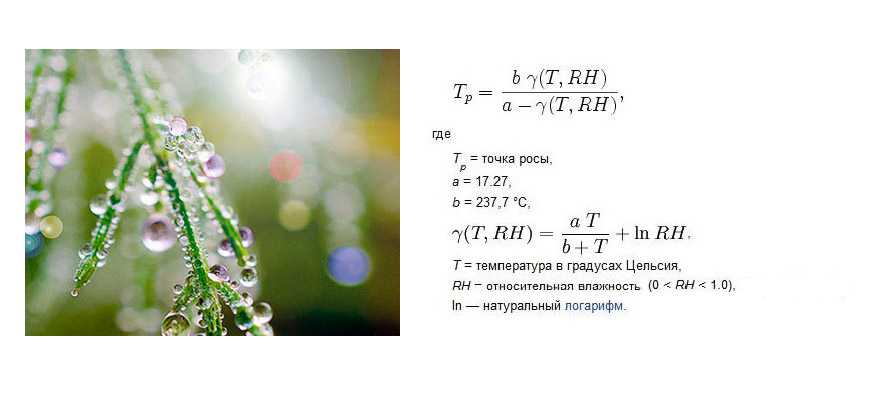 Для определения значения точки росы используется простая формула: