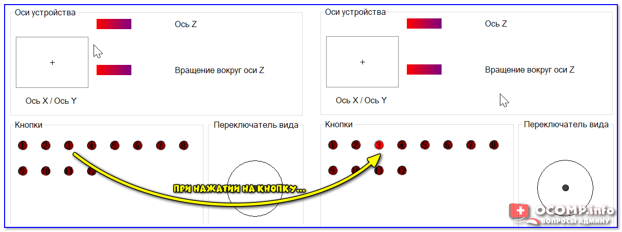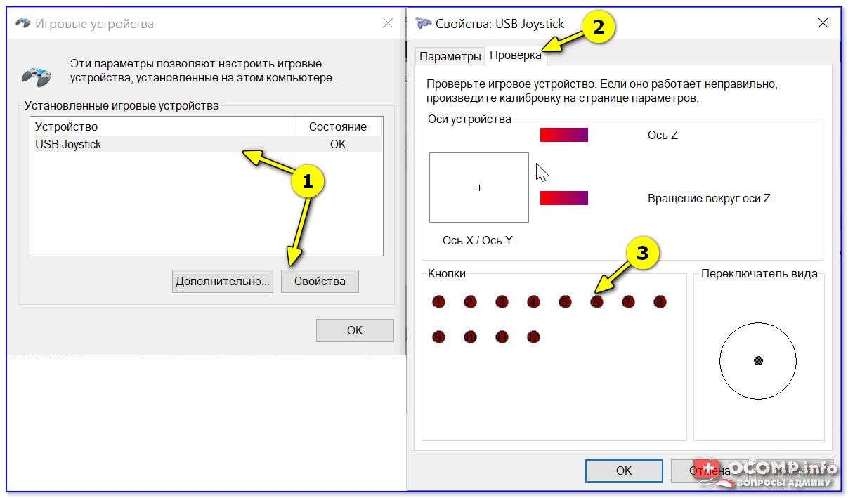 Если джойстик исправен и драйвер на него корректно установлен — вы должны увидеть, как на экране проверки начнут мигать кнопки (см. скрин ниже ). В идеале, при нажатии на любую из кнопок — вы должны видеть реакцию…