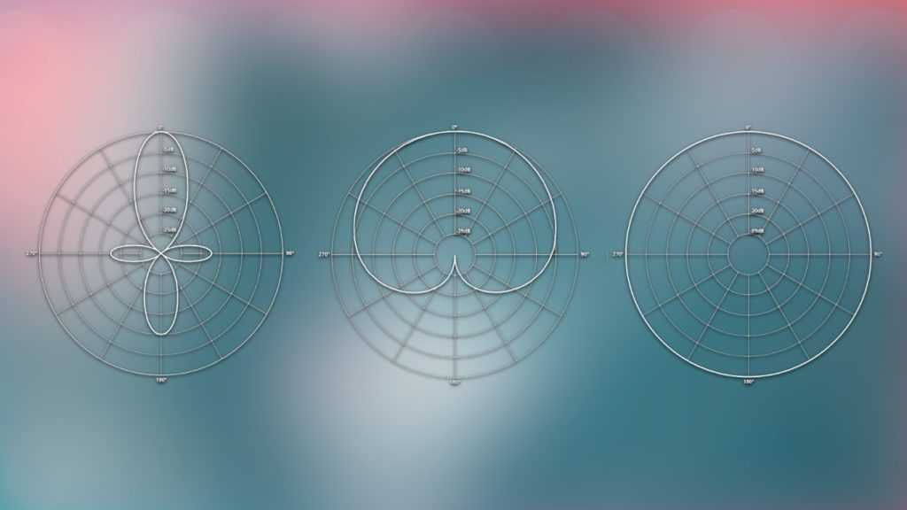 Слева направо: узкая восьмёрка (shotgun), кардиоида, всенаправленная диаграмма
