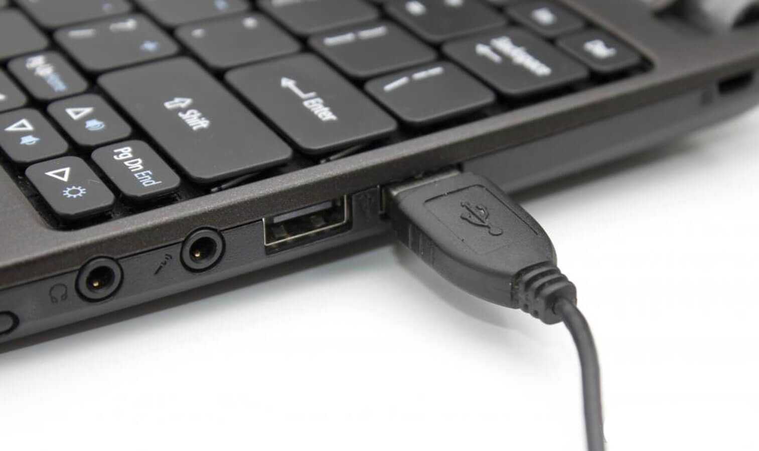 Шаг 2. Теперь вставьте кабель в порт USB. При этом не нужно выключать ноутбук. Если имеете возможность выбрать между версиями 2.0 и 3.0 на ноутбуке, лучше остановиться на первом и оставить 3.0 для других подключений, которые могут потребовать более быстрой передачи.