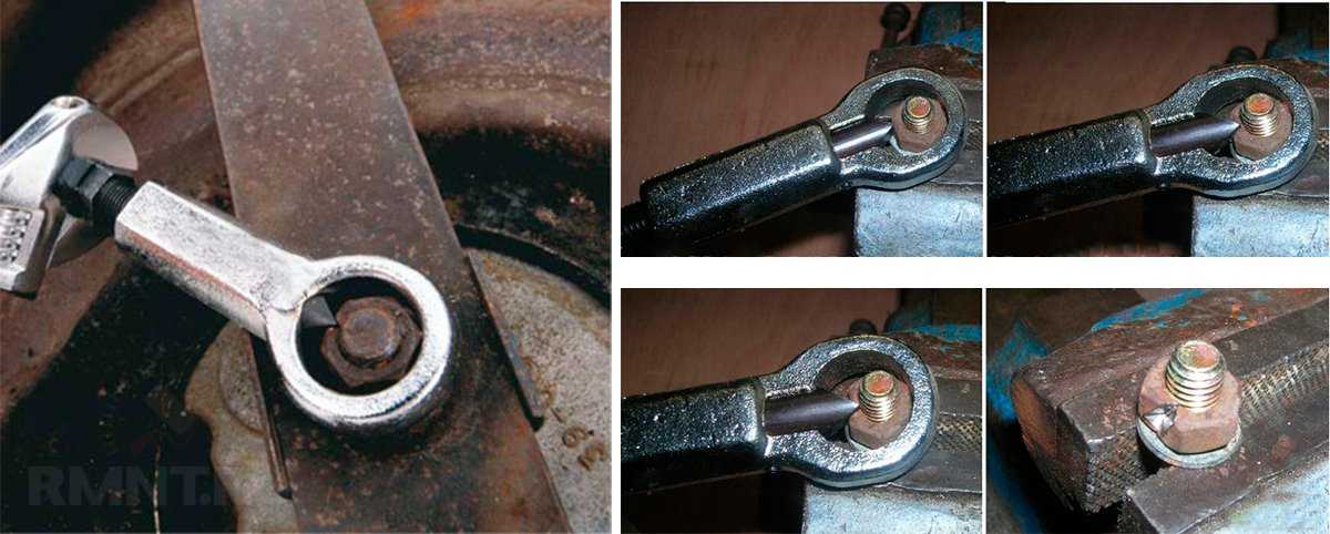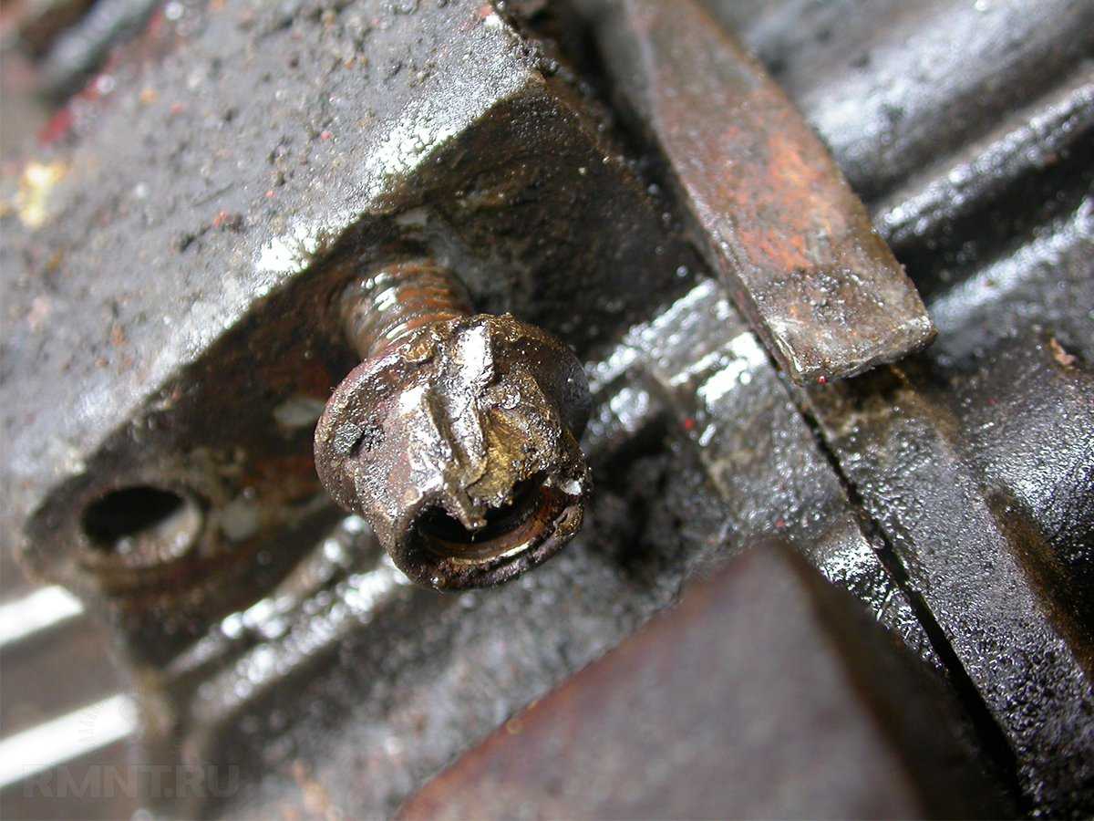 Усилие для выкручивания должно быть умеренным, чтобы не пришлось высверливать дополнительные отверстия. Если процесс выполнен правильно, необходимо тщательно зачистить болты от ржавчины и обработать графитной смазкой.