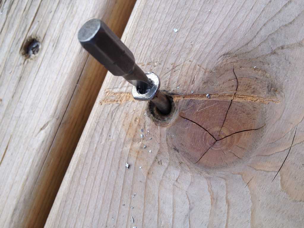 Оно позволяет полностью удалить слишком глубоко утопленный винт. Работает этот метод с деревянными поверхностями. Можно просто высверлить сам метиз, позднее заменив его новым. Кроме того, хорошим решением может быть использование пробочной насадки, способной вытащить солидный участок деревянной поверхности вместе с его содержимым.
