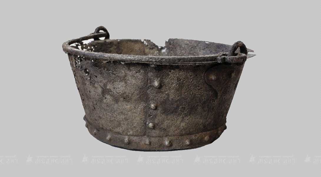 Другой выдающийся историк и археолог В.И. Сизов (1840-1904) зафиксировал железный клёпаный котёл, найденный при раскопках Гнездовского могильника, датированного второй половиной X – началом XI века. В том же могильнике обнаружили клёпаный железный экземпляр, выполненный в форме низкого цилиндра с ручкой, сохранившейся в великолепном состоянии. При раскопках могильного кургана близ деревни Сязнига в Приладожье был обнаружен котёл аналогичный гнездовскому. Зачастую вместе с котлами хоронили и крюки с цепями, на которых эти котлы подвешивали над очагом.