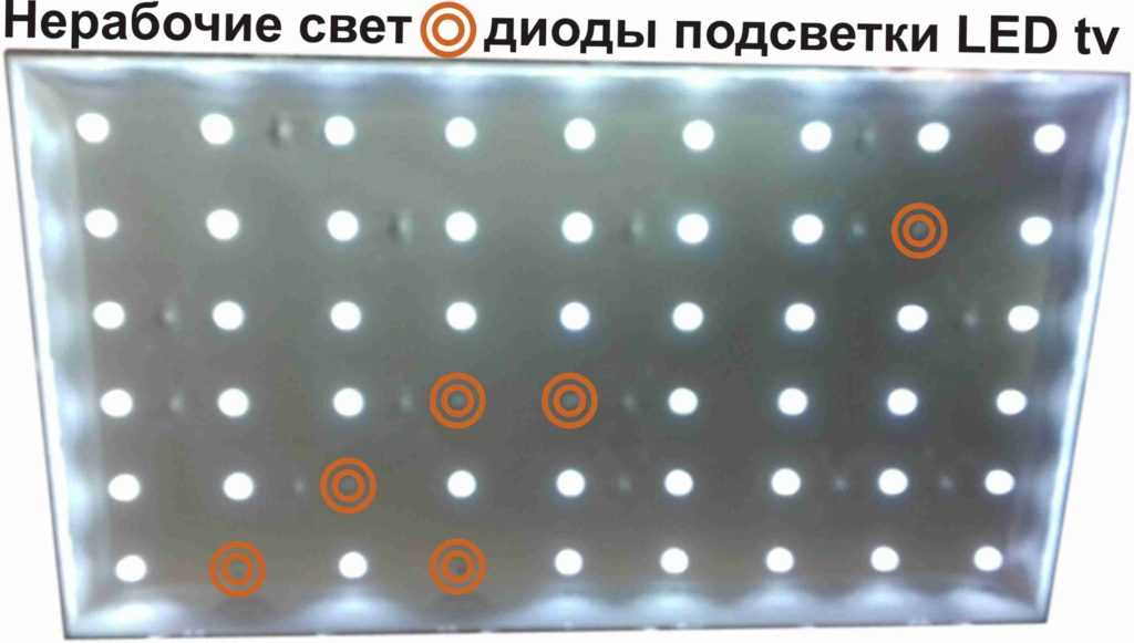 Чтобы точно узнать причину поломки, придется потратить много времени, поскольку на ТВ стоит большое количество звеньев одной цепи. Это работа достаточно кропотливая. Потребуется измерить напряжение на всех светодиодах и выяснить, какой именно вышел из строя.