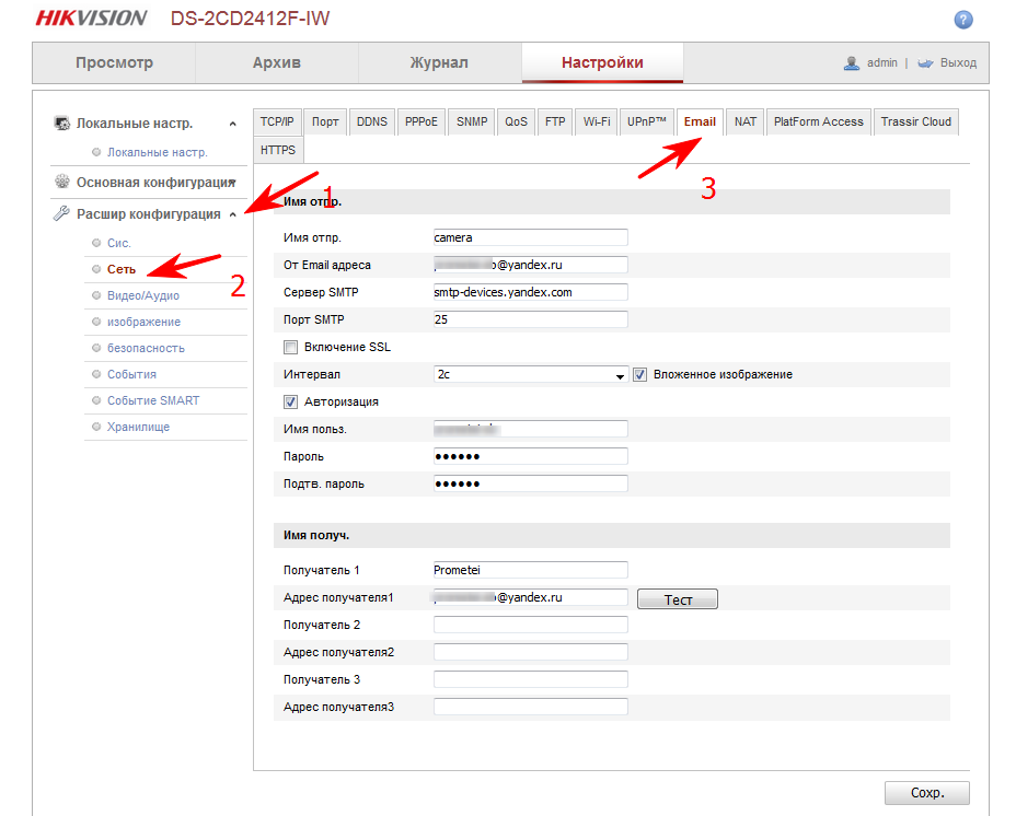 Как в системе видеонаблюдения настроить отправку тревожных сообщений на электронную почту