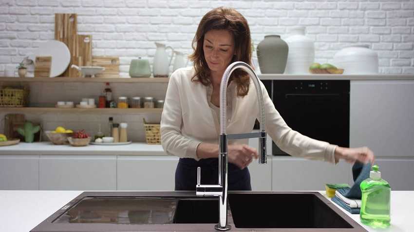 Для ухода за мойкой из искусственного камня используют мягкие губки и салфетки