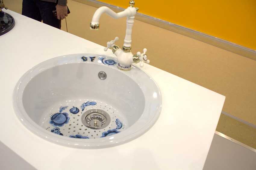 Керамическая кухонная раковина с дизайнерской росписью