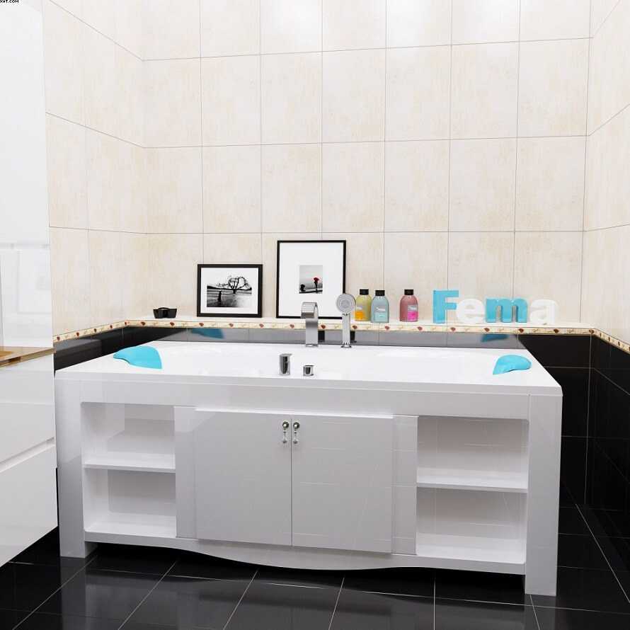 - Для небольшой ванны желательно использовать конструкции, которые обеспечивают легкий доступ к пространству под ванной и оборудованы специальными полочками или ящиками для хранения бытовой химии, тряпок и т.п.