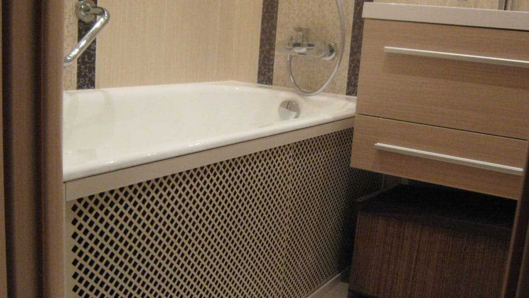 Самое распространенное и одно из самых недорогих решение – это использование специального экрана под ванну. Это уже готовые конструкции, которые быстро и легко монтируются, а при необходимости без труда демонтируются (например, чтобы заменить слив).
