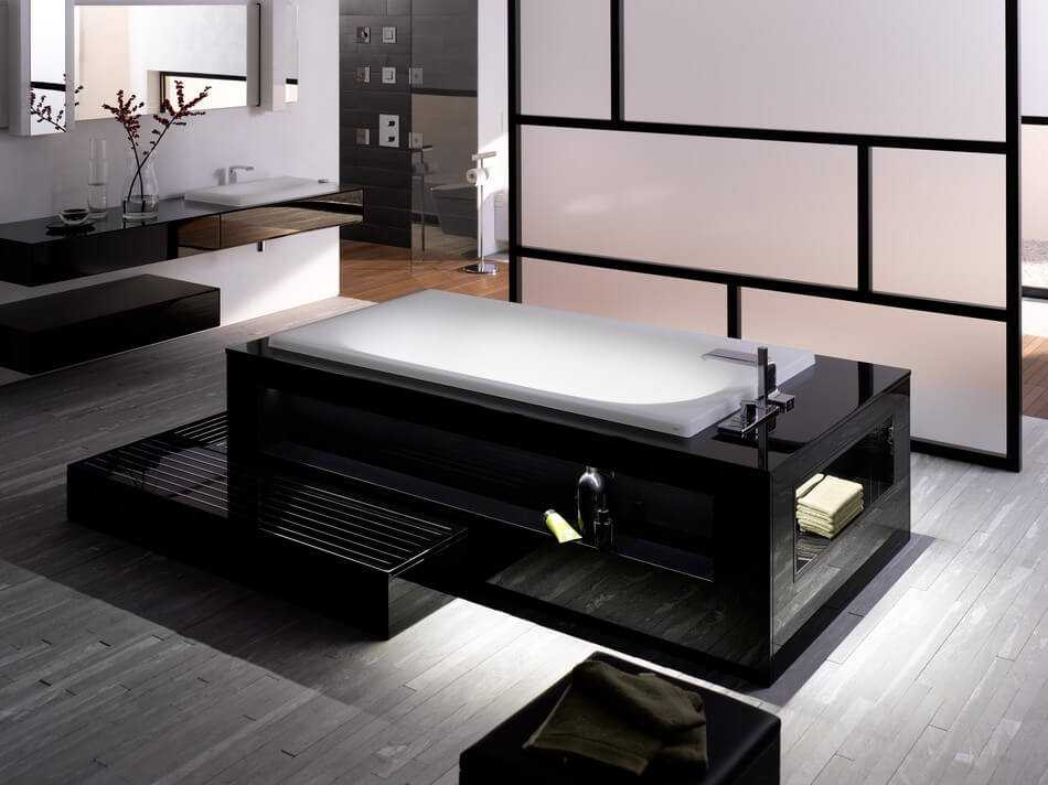 Но не все могут себе позволить выделить большое пространство. Ванные комнаты обычно не радуют своими размерами и лишние 10-15 см могут быть критичными. К тому же такой вид установки может быть неудобным для пожилых людей. Чтобы зайти в ванну, приходится делать большой шаг, что для них не всегда возможно.