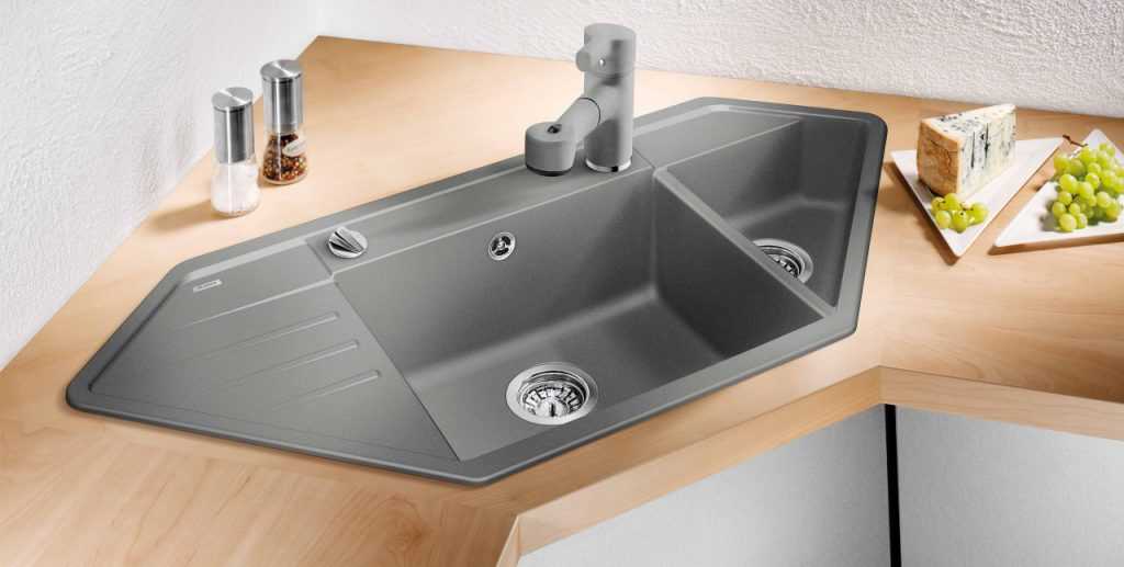Мойки для кухни — шпаргалка покупателя. Такая мойка не только позволяет задействовать «неудобный» угол, но и выглядит более компактно. фото кухни тут, в моем фотоальбоме . Как это в каменную мойку не врезают водяные фильтры? Кухня !