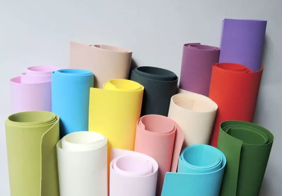 - Цветной (фоамиран, фом). Изолон выпускается в различных цветах. В магазинах можно купить в рулоне, также листы разных размеров и толщины. Широко используют в дизайне и декоре.