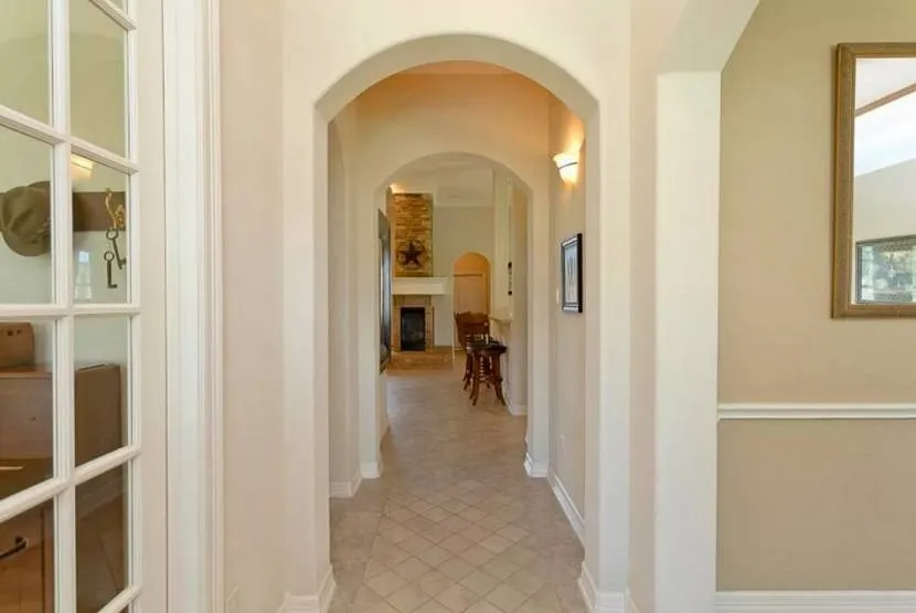 Широкий дверной проем из декоративного камня, соединяющей две комнаты в доме