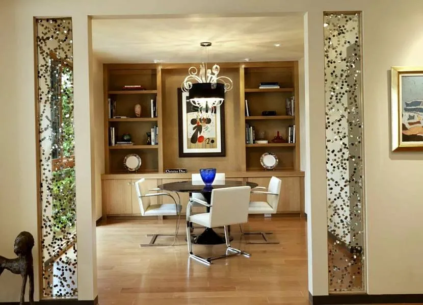 От дверей отказываются при оформлении прохода барной стойкой, витражными элементами, фрагментами мозаики. Часто такие приёмы уместны для квартир студий.