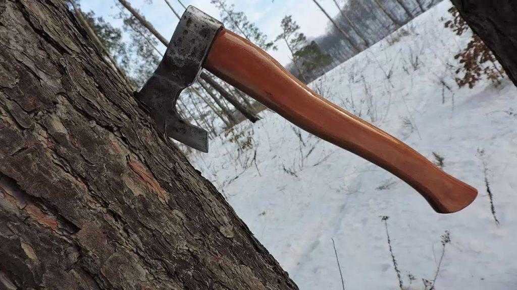 Второе название туристический топор. Облегчённый прибор, которым рубят хворост. Также можно использовать вместо ножа. Вес колеблется в пределах 0,5 – 1 кг. Топорище обычно прямое, в основе – Гикори.