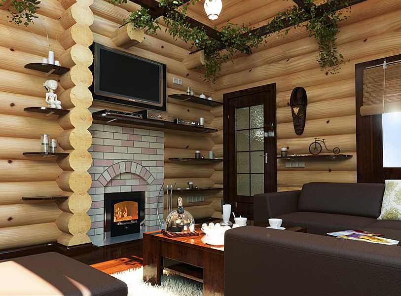 Однако наиболее популярна отделка в привычном русском стиле – сдержанная, лаконичная, с массивным столом, лавками и лежанками. Нотку современности добавят бильярд или телевизор.