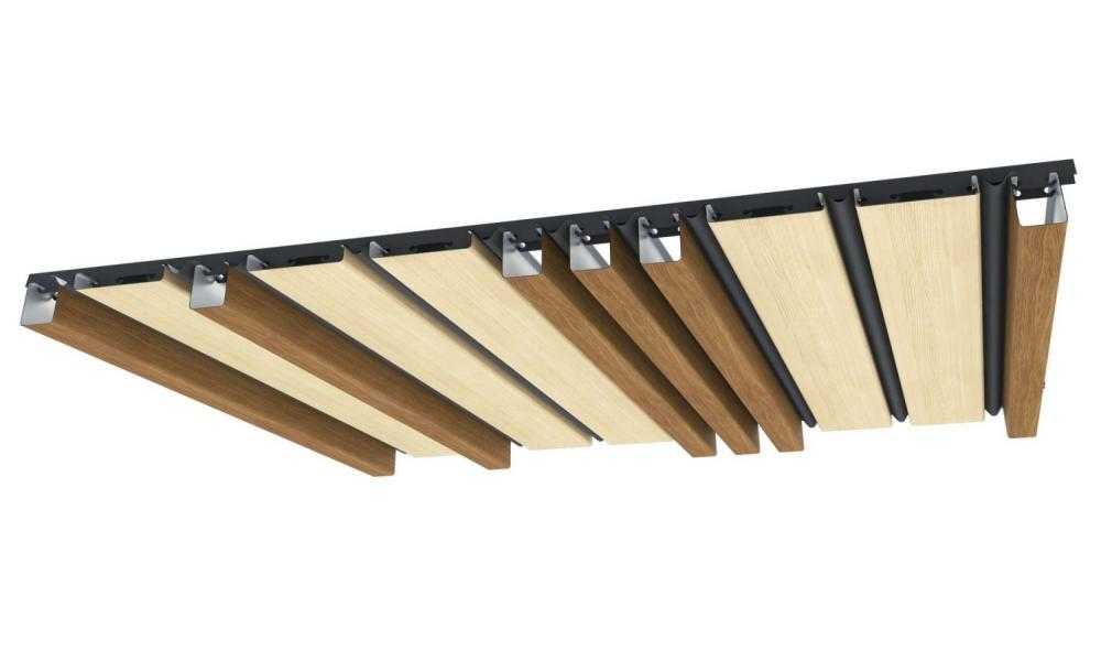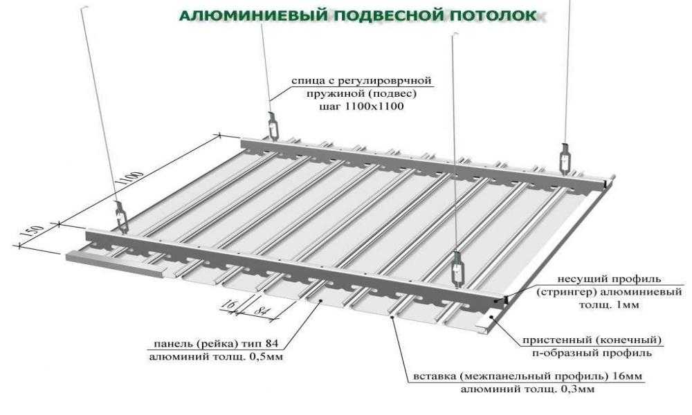 Панели подвесных конструкций производят из различного материала, который можно сочетать с любыми деталями дизайна. Обычно рейки выпускают из алюминия, стали и пластика.