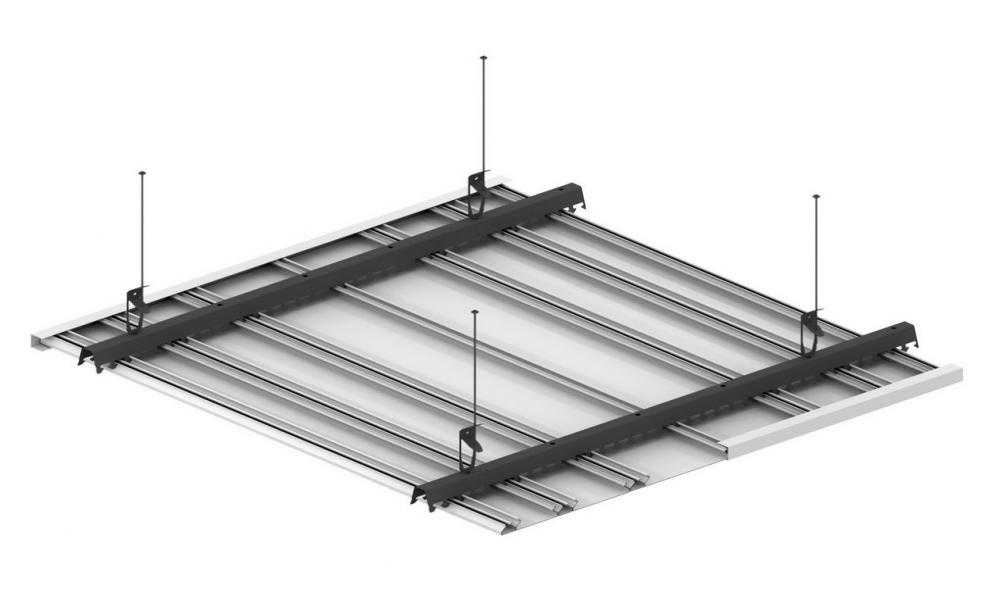 Конструкция подвесного алюминиевого потолка позволяет надежно фиксировать устройство и закреплять на потолочных плитах.