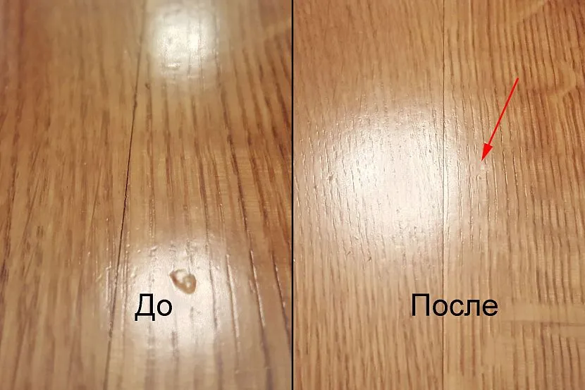 Через некоторое время оцените состояние линолеума – если вмятина осталась, вновь смочите материал аммиачным раствором и повторите процедуру.