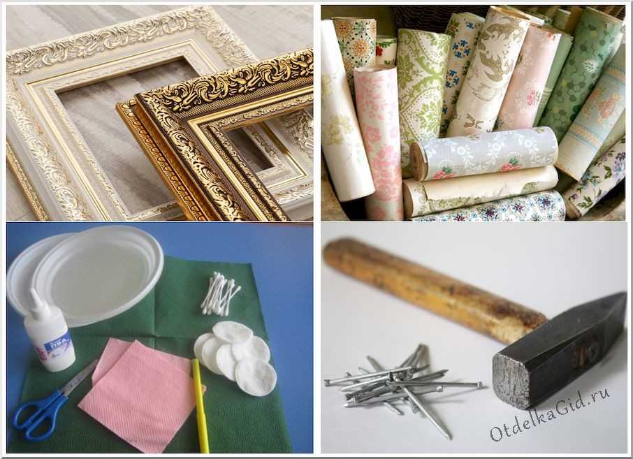 Чтобы своими руками сделать панно из обоев, состоящее из отдельных картин, необходимы следующие инструменты и детали: