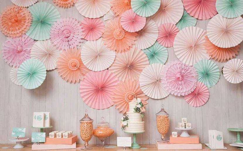 Бумажные цветы различных оттенков прекрасно впишутся в интерьер детской комнаты.