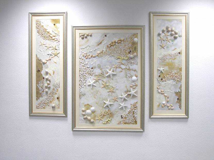 - Вместо большого панно на стене можно разместить несколько маленьких взаимосвязанных композиций.