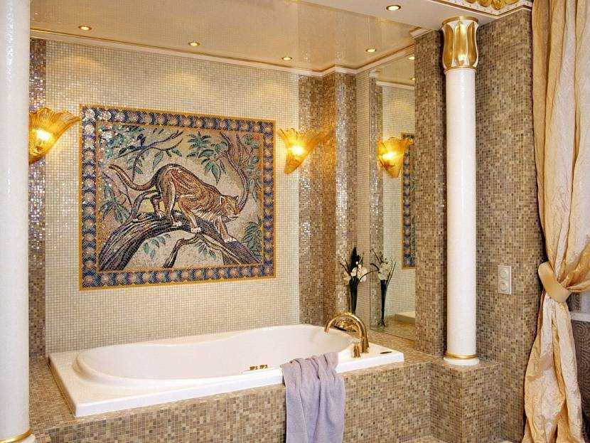 Панно из керамики в интерьере ванной комнатыИсточник domvpavlino.ru